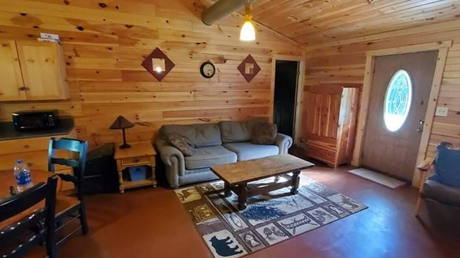 2 Bedrooms with Queen Size bed • 1 full bathroomCute 2 bedroom one bath newly built cabin. Surrounded by trees and close to fishing. Back porch with bbq grill and garden furniture invites for outdoor relaxation. Just a short...